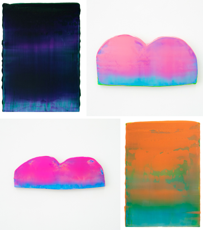 닉 슐라이커(Nick Schleicher, b.1988)는 촉각적 물질성을 지닌 색면적 추상회화를 중심으로, 한편 회화와 사물이 교차하는 오브제 작업을 한다. 그의 작업은 미니멀리스트의 명료성과 진지함에서 비켜서서 위트를 더하여 보다 정서적이며 인간적인 것을 추구한다. 작가는 회화의 지지체로서의 캔버스와 표면, 안료의 물성과 적용방식을 오래 탐구해 왔다. 특히 형광안료나 광택이 나는 젤 등 물성이 강한 매체로 아주 얇은 레이어를 만들며, 화면이 평평해질 때까지 반복적으로 층을 쌓아 나간다. 정확한 의도와 자유롭고 즉흥적인 구성이 함께 작용하여 각 레이어가 투명하거나 불투명하게 불규칙적으로 겹치고, 여기에 매끈거리고 반짝이는 안료의 물성이 더해지면서 화면에는 모호한 환영적 공간감마저 생긴다.
