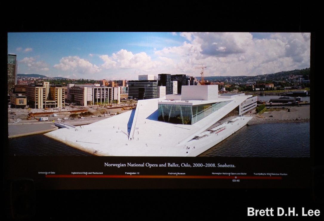 오슬로 랜드마크에 대한 영상도 틀어주고... 마침 오슬로 오페라하우스도 나온다.