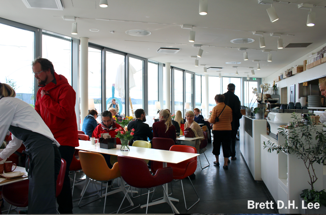 건물의 끝에 위치한 전시관. 지붕이 선박의 형태를 머금고 있다. 바깥으론 북해가 보이고...