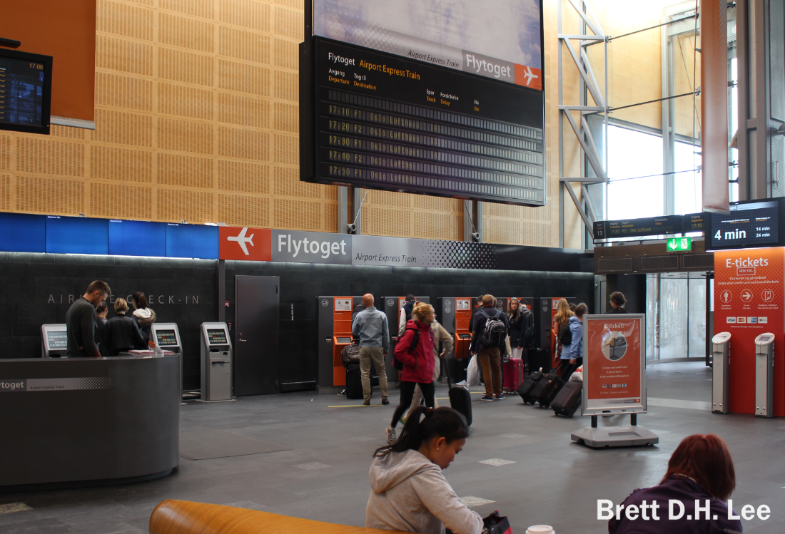 오슬로 중앙역에서 Flytoget타고 공항까지 약 20~22분만에 express로 간다. 2022년 기준 성인 204 크로네 (편도).