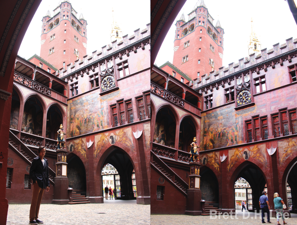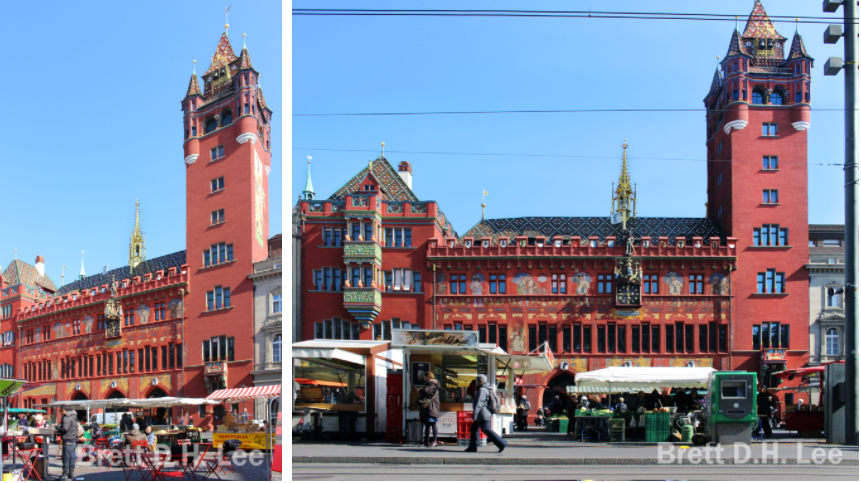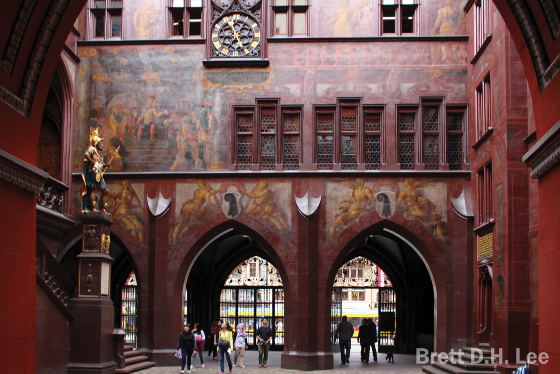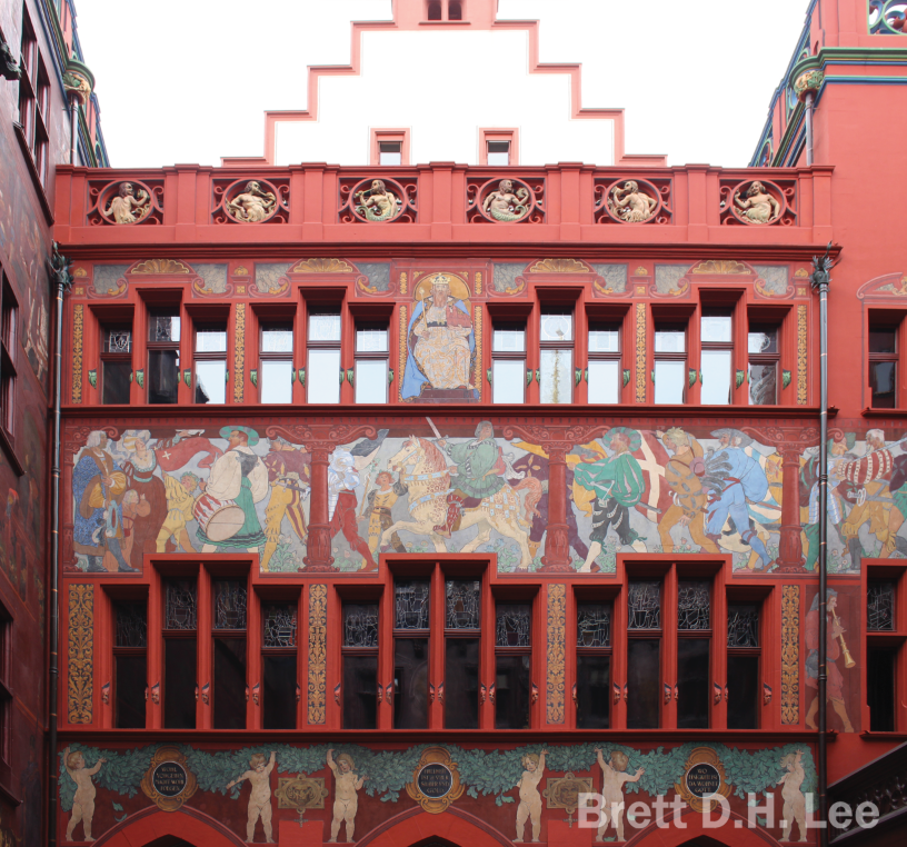 붉은 사암으로 지어진 이 화려한 건물이 바젤 시청사이다. 16세기 초 처음 완공되었고 17~19세기에 계속 확장되어 현재의 모습에 이른다. 특히 한스 홀바인 Hans Holbein의 프레스코화가 인상적.